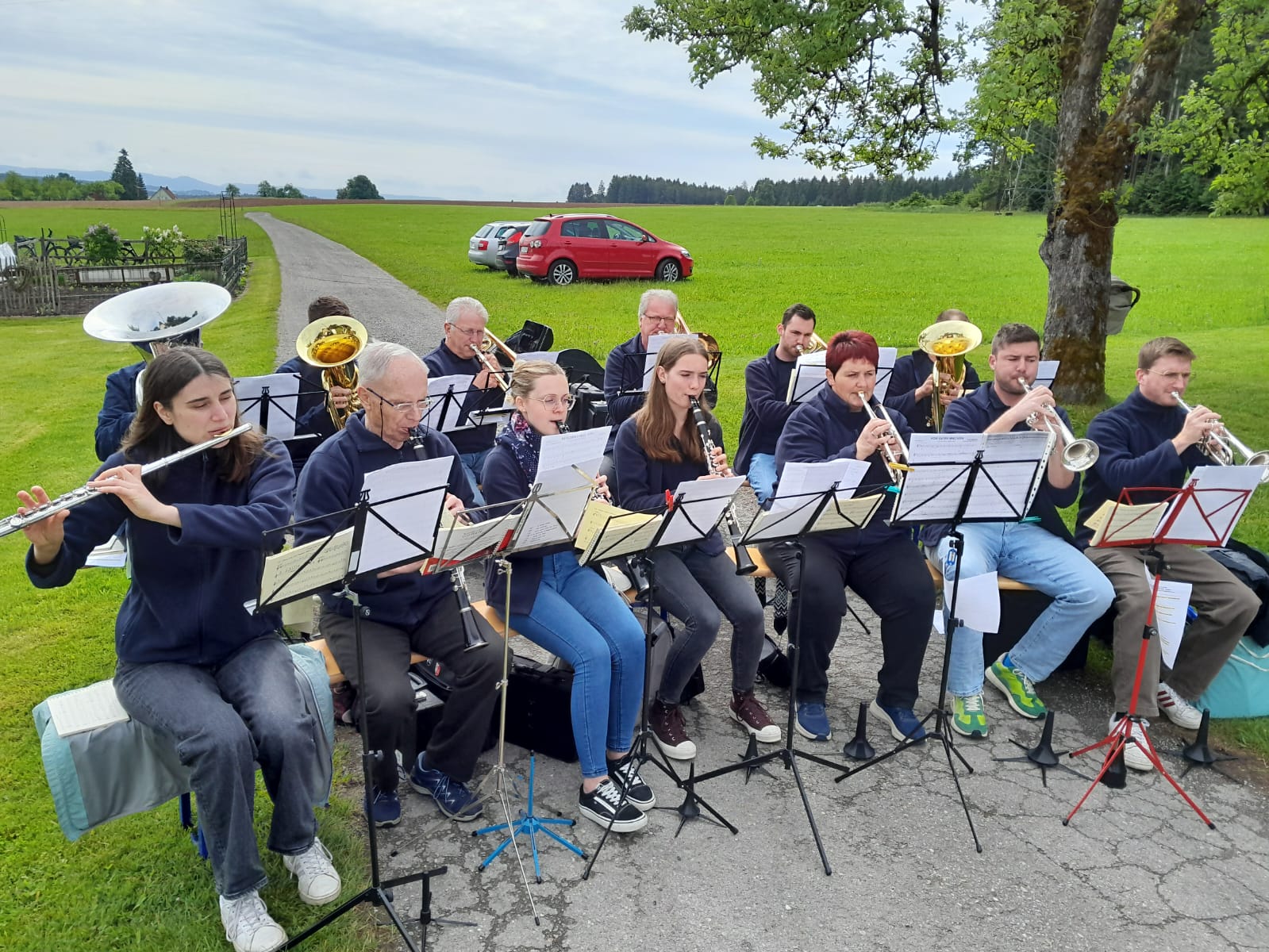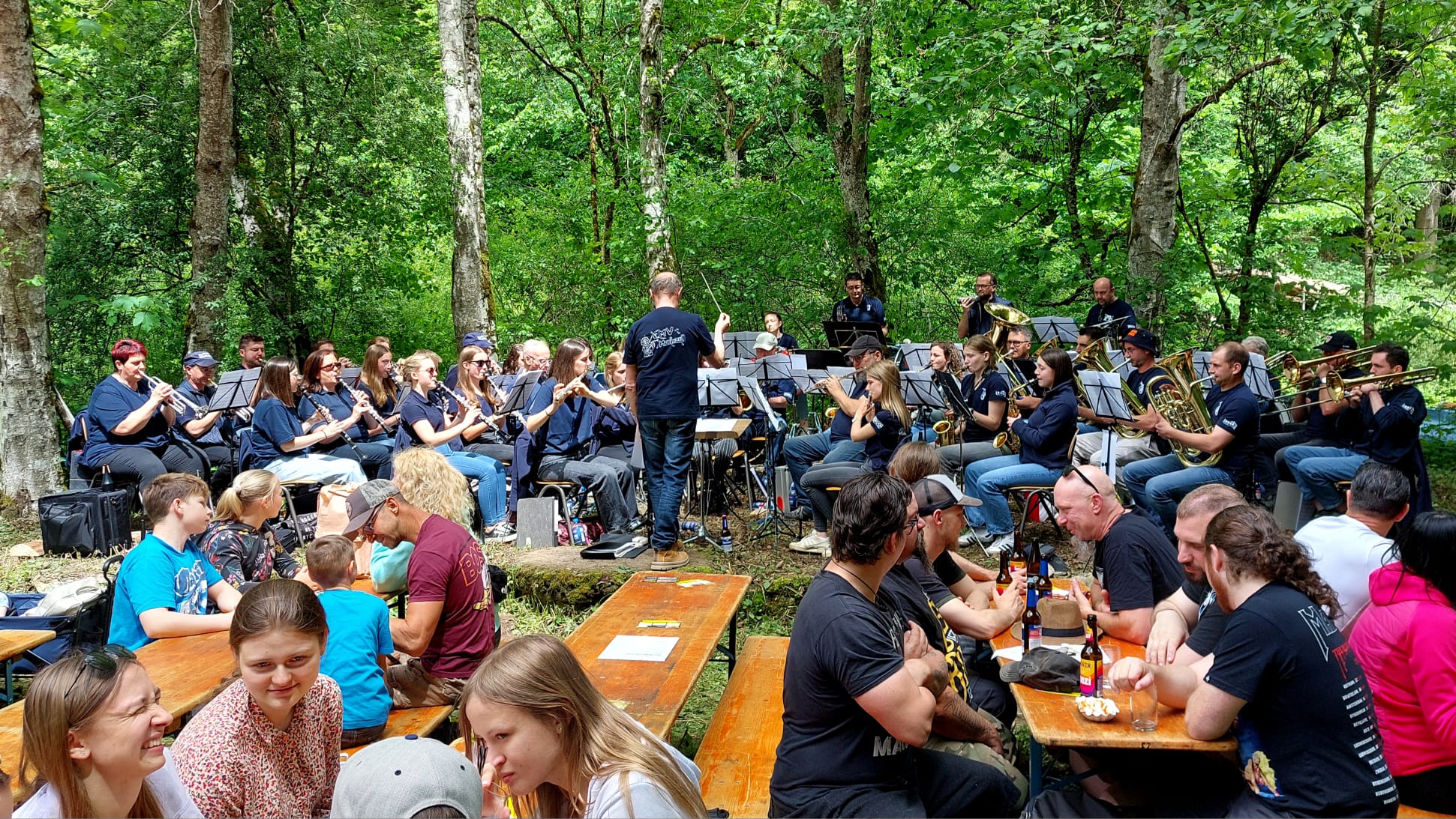 Eine kleine Besetzung des Musikvereins Mariazell hat auch in diesem Jahr wieder traditionell den Gottesdienst an Christi Himmelfahrt musikalisch umrahmt. Bei erfreulich gutem Wetter konnte der Gottesdienst wieder bei einer tollen Location im Burschachen im Freien stattfinden. Nach dem Gottesdienst trafen sich die Musikerinnen und Musiker des gesamten Vereins um 11:30 Uhr an den Eschbachparkplätzen. Von dort aus sind wir in Fahrgemeinschaften zum Neckartälefest der Musikkapelle Dauchingen gefahren. Die Anfahrt führte uns zu einem besonderen und ungewohnten Veranstaltungsort, da das Fest hinter dem Steinbruch, mitten im Wald stattfand. Trotz der ungewöhnlichen Location, umgeben von Bäumen und Sträuchern, konnten wir mit unserer abwechslungsreichen Stückauswahl und toller Musik überzeugen. Die Festbänke füllten sich zunehmend, sodass die Stimmung unter den Besuchern immer besser wurde. Rundum war es ein gelungener Tag, den wir Musiker*innen noch gemütlich haben ausklingen lassen.