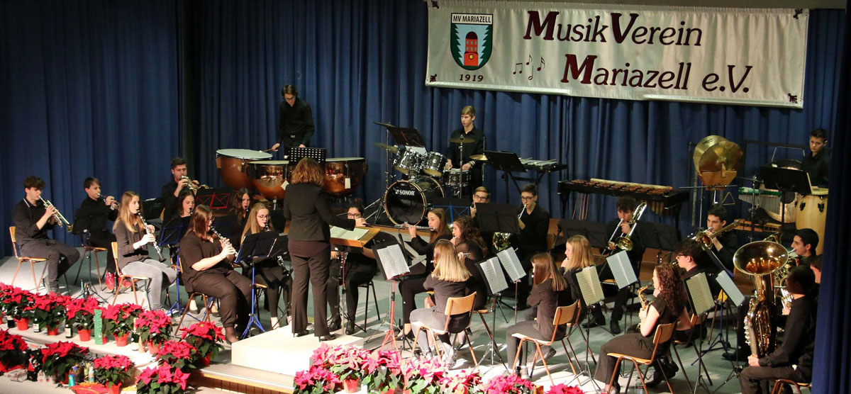 Die Vorsitzenden des Musikvereins aus Mariazell, Joachim Schaummann und Iris Hurtz, durfte an diesem verschneiten Vorabend des dritten Advents eine, mit Gästen gut gefüllte, Mühlbachhalle begrüßen. Unter den Gästen befanden sich mit Walter E. Ziegler und Franz Moser der jeweils alte und neue Bürgermeister, beide mit Gattinnen. Außerdem die Vertreter des Gemeinderats, sowie Vertreter der örtlichen Vereine und der befreundeten Musikvereine.
